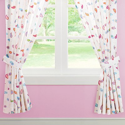 The Paisley Dreams window drapes are made of 100% cotton percale and feature fun paisleys dancing around small pink dots. Sure to brighten any girl's room.